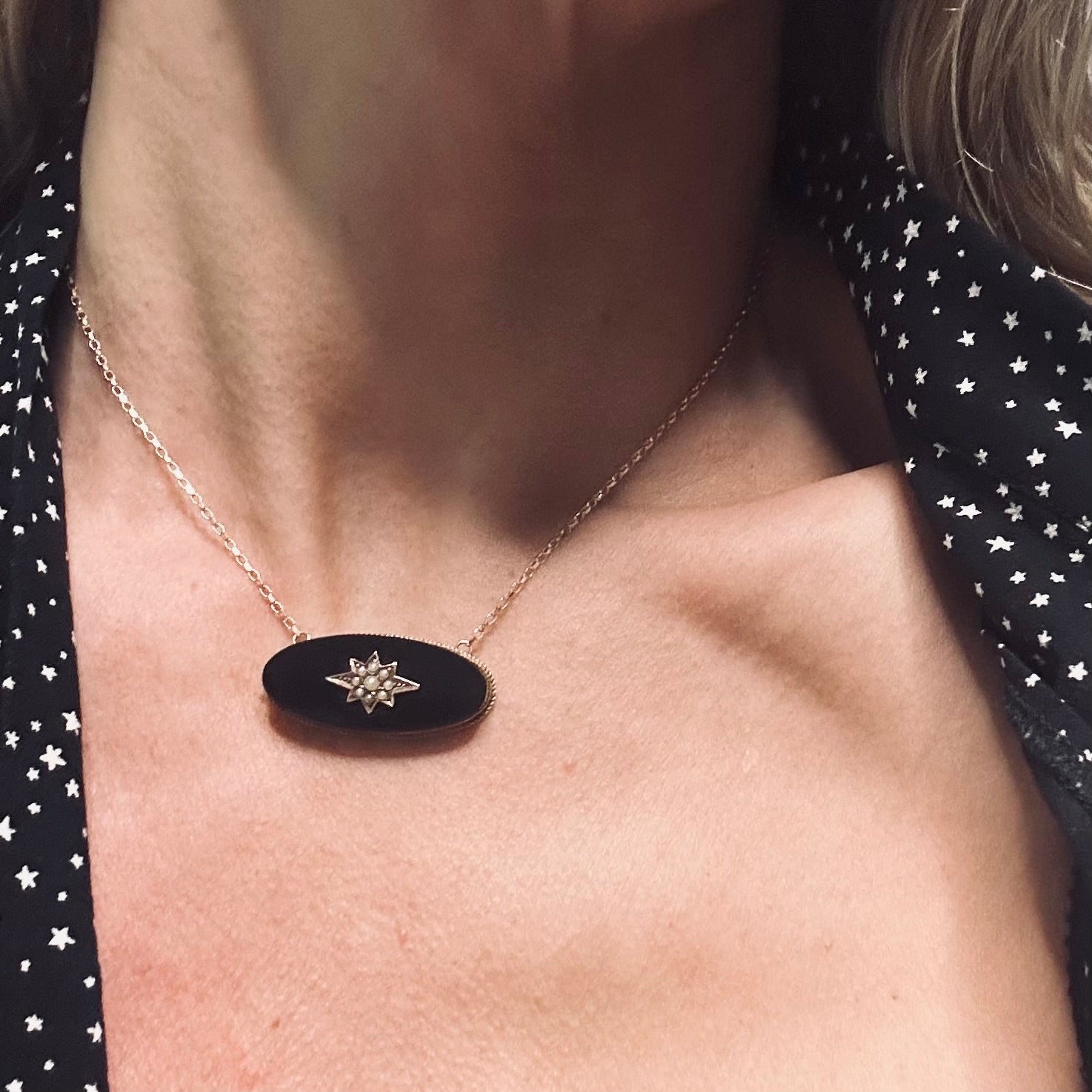Victorian Onyx & Seed Pearl Star Necklace